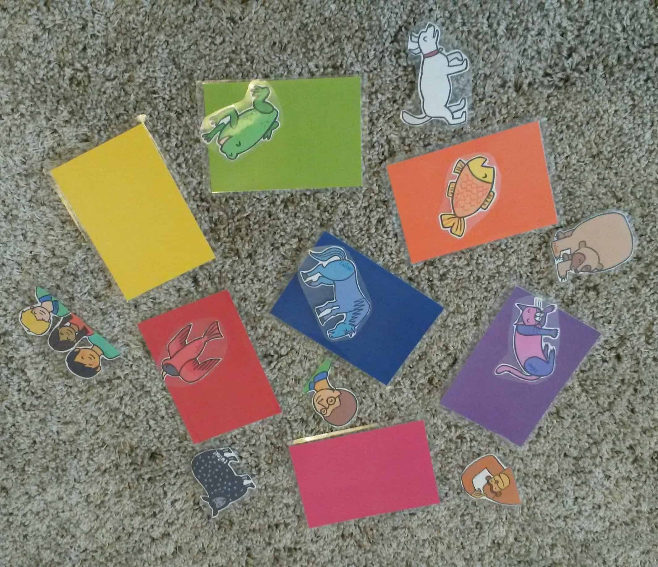 I cut out some pictures, of the animals from the book, on Twinkl; they were free to download. Floss watched me cutting out – fascinated. It got me thinking that she’s quite good with fine motor control and that I might try and hunt down a pair of scissors that are age appropriate for her. As each one was laminated I put them on the hard floor in our kitchen and Floss eagerly attempted to pick them up. It was definitely a challenge and a great fine motor activity without any planning. She spent over 10 minutes picking up the different animals. For older toddlers you could definitely get them to help with the cutting out.